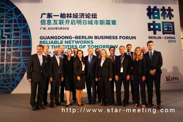 2014年5月30日,由廣東省省政府與德國(guó)工商大會(huì)主辦的廣東-柏林經(jīng)濟(jì)論壇新聞發(fā)布會(huì)在廣州圣豐索菲特大酒店舉行。廣東省副省長(zhǎng)招玉芳、柏林市市長(zhǎng)Klaus Wowereit、德國(guó)工商大會(huì)副主席Stephan Schwarz、柏林市經(jīng)濟(jì)促進(jìn)局局長(zhǎng)Melaine Bahr等領(lǐng)導(dǎo)出席發(fā)布會(huì)。人民日?qǐng)?bào)、經(jīng)濟(jì)日?qǐng)?bào)、廣東廣播電視臺(tái)珠江頻道、騰訊網(wǎng)等多家媒體參加發(fā)布會(huì)。廣東-柏林經(jīng)濟(jì)論壇是柏林市政府面向中國(guó)企業(yè)的招商引資宣介會(huì),雙方將就相關(guān)問(wèn)題進(jìn)行深入探討與交流。