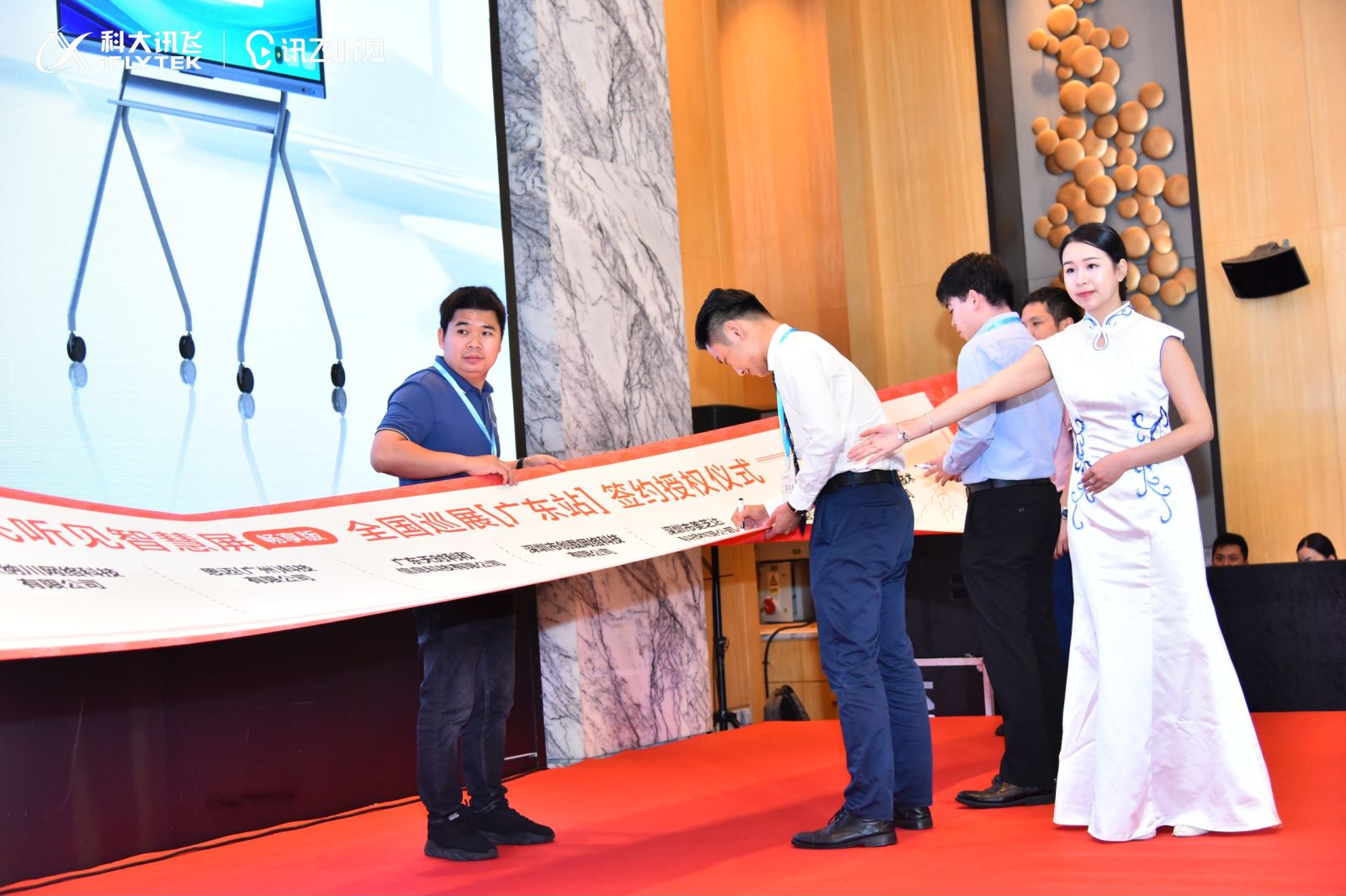 活動(dòng)內(nèi)容:訊飛聽見智慧屏?xí)诚戆娣謩e于合肥、廣州、上海、北京四座城市落地巡展之廣州站簽約儀式。